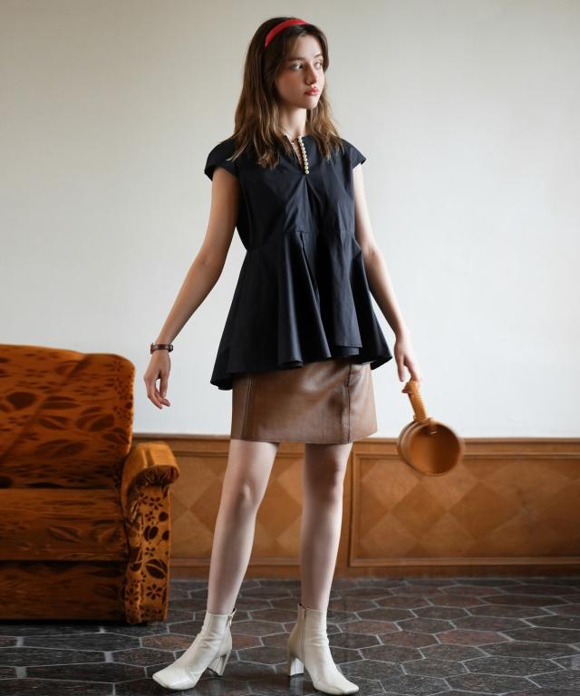 大きめに取ったギャザーのペプラムがふんわり揺れて女性らしいラインを作ります。お腹周りや腰周りの体型カバーにもGOOD!タフタのハリのある素材感が高見えし、シーンを選ばずにコーディネートできます。
