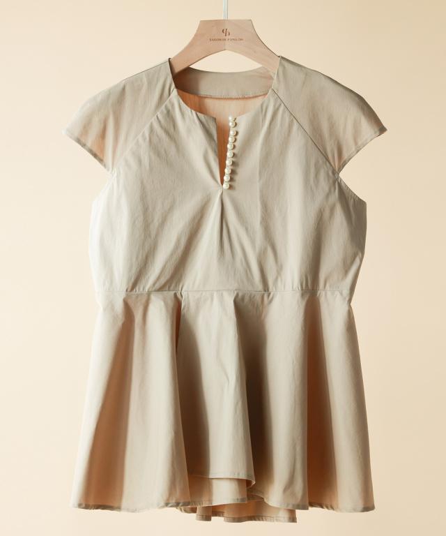セゾン ド パピヨン(SAISON DE PAPILLON)/パール付きキーネックペプラムブラウス