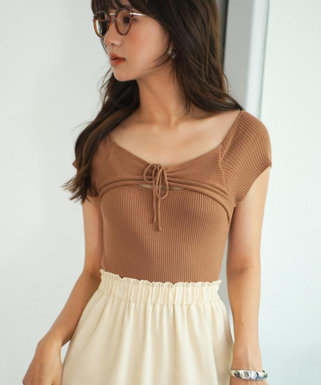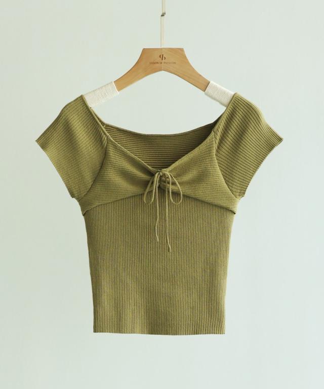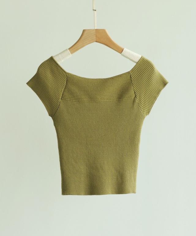 フレンチスリーブショート丈リブニット
