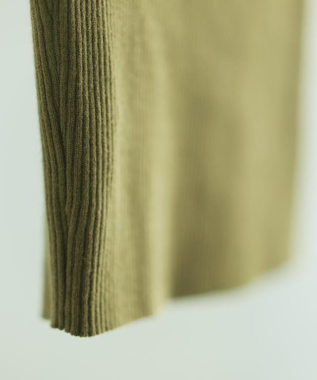 細かいリブ編みがほどよく縦ラインを作り、ぴったりフィットしながらもすっきりとしたシルエットが完成。ほどよい伸縮性で着心地も快適です。