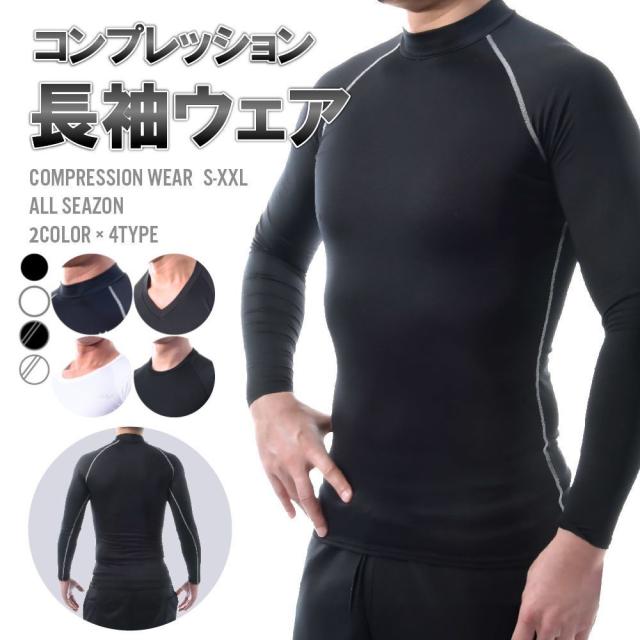 送料無料 コンプレッションウェア スポーツ用インナー メンズインナー 長袖 丸首 Uネック Vネック ハイネック トレーニングウ