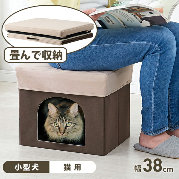 ペットハウスになるスツール ねこ 椅子 イス 腰かけ チェアー 小型犬 ペット ペットハウス スツール キャットハウス ドッグハウス 家具 椅子 足置き オットマン ボックス型 かわいい 折りたたみ コンパクト 収納 畳める キューブ型 クッション リビング 犬 猫 可愛い 腰掛け