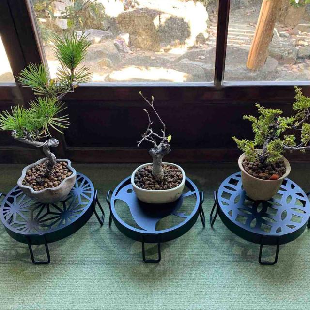 縁起の良いとされている吉祥紋様がおしゃれなプランタースタンドです。鉢のレイアウトを楽しめ、玄関やベランダにアクセントをつけてくれます。重厚感ある和モダンなデザインは、盆栽はもちろん観葉植物にもよく合います。