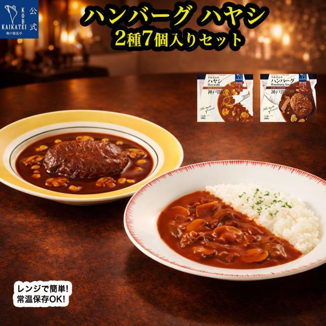 レトルト食品 詰め合わせ ハンバーグ ハヤシ 2種7食 セット 自宅用 送料無料 のし包装不可 簡易梱包 神戸開花亭 レトルト 惣菜 おかず 常温保存 温めるだけ 洋食 一人暮らし 仕送り 備蓄 保存食 非常食 レンジ対応 母の日