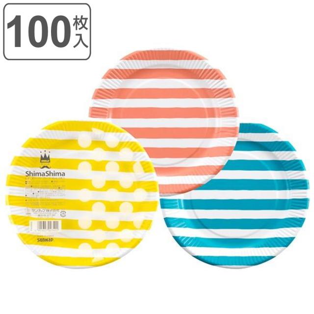 紙皿 しましまペーパープレート18cm 100枚入 10枚×10セット ( 使い捨て ペーパープレート 紙 皿 18センチ お皿 紙製 プレート 日本製 使い捨て容器 紙容器 ボーダー BBQ バーベキュー アウトドア トレー カラフル しましま )