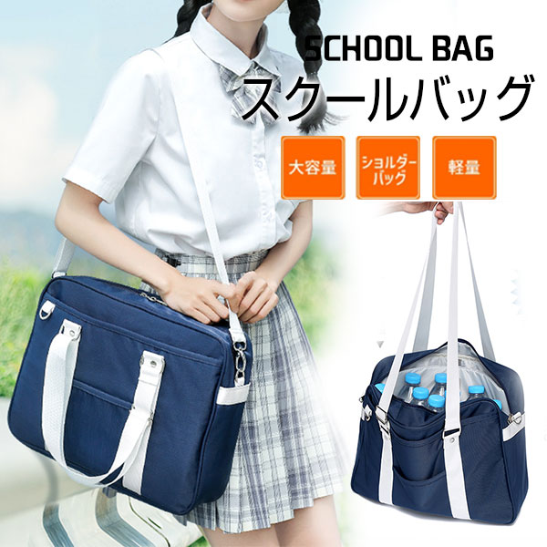 スクールバッグ 女子 男子 サブバッグ 高校 中学 ナイロン 通学バッグ ボストンバッグ 多機能 丈夫 シンプル おしゃれ ブラック ジュニア