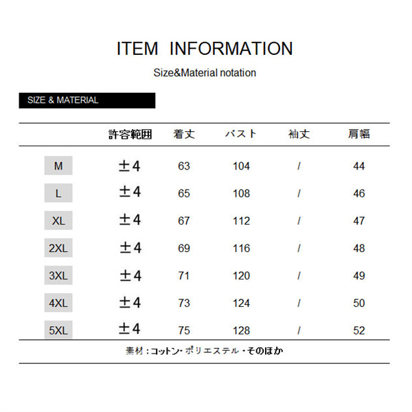 サイズ:/M/L/XL/2XL/3XL/4XL/5XL