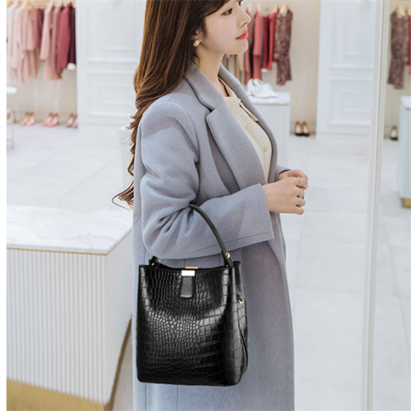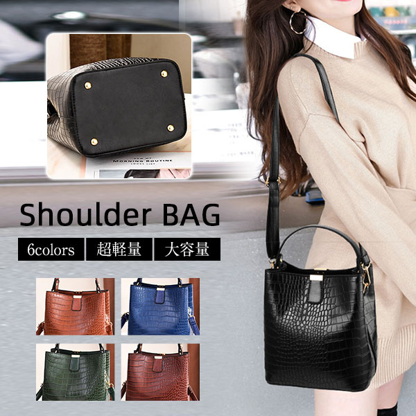 ポイント超超祭 ショルダーバッグ レディース 斜めがけ 大人 鰐柄 かるいかばん 大容量 かわいい 軽い 可愛い カジュアル 黒 トラベル 小さい 合皮 軽量