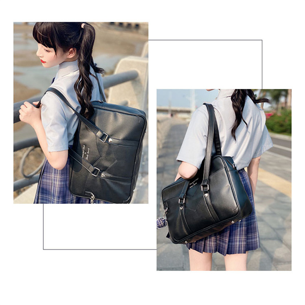 ◎レザーライクな素材で大人っぽく持てる合皮スクールバッグ。