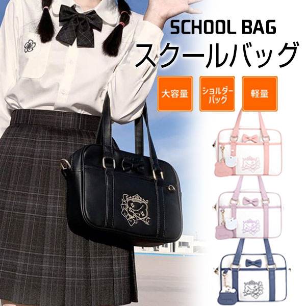 値下げ スクールバッグ 合皮 大きめサイズ 学生かばん 手提げ鞄 通学バッグ サブバッグ 軽量 ブラック肩掛け A5 高校生 中学生 肩掛け 丈夫