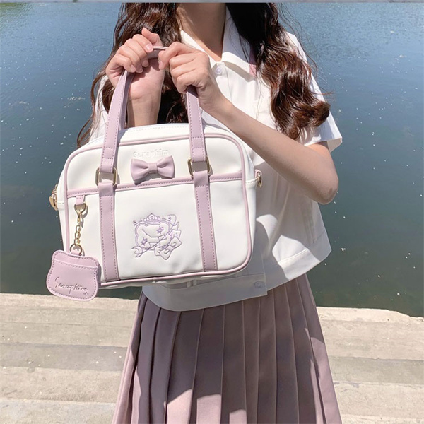 ◎レザーライクな素材で大人っぽく持てる合皮スクールバッグ。