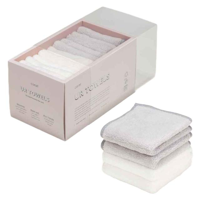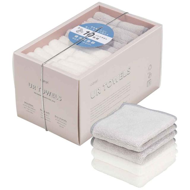 グレー・ホワイトの2色のタオルが5枚ずつ入っています。ちょっとしたお出かけのときにハンカチとして持っていくのもおすすめです。