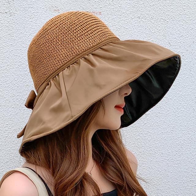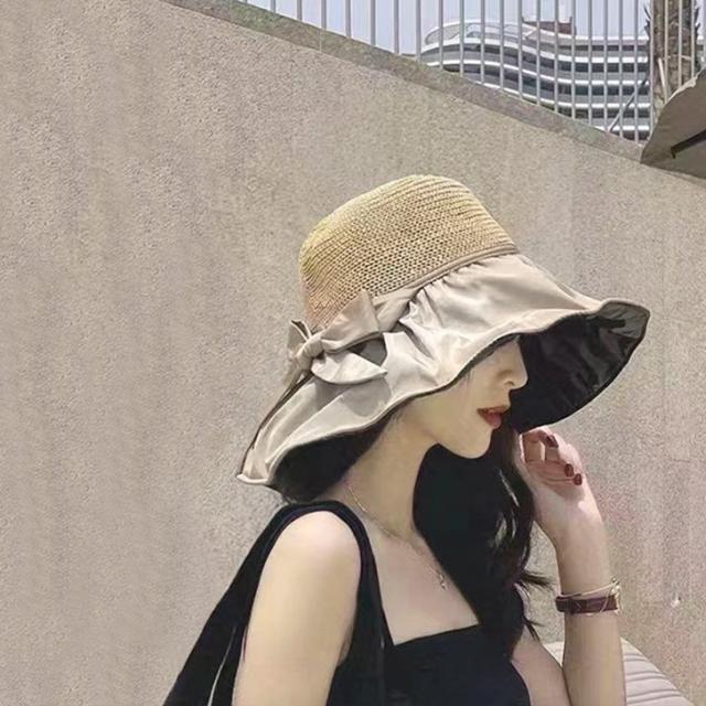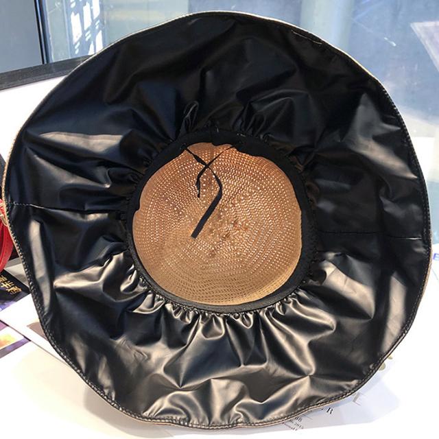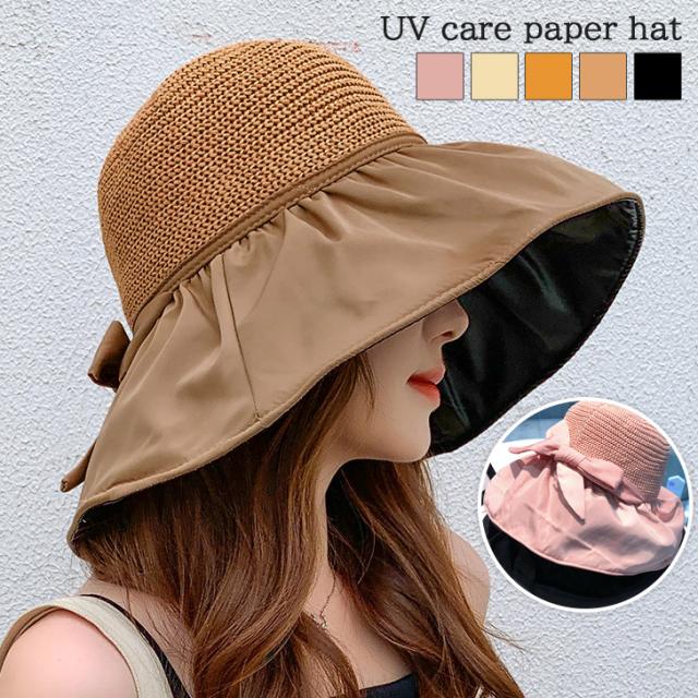 新作 UVケア ビニール加工 リボン ペーパーハット レディース 帽子 ハット ブリムハット 麦わら帽子 あご紐 つば広 深め 大きい サイズ調整 日よけ 紫外線防止 折りたたみ おしゃれ かわいい 大人 夏