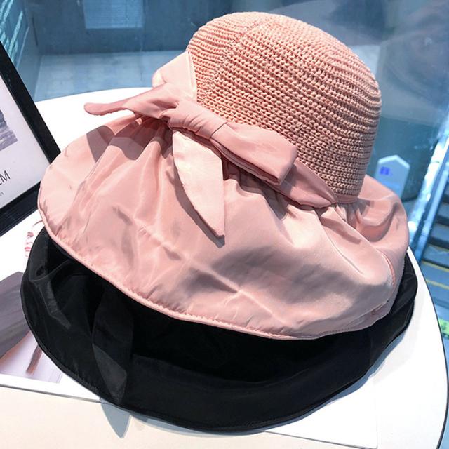 女性らしいリボンとつば広のデザインで、