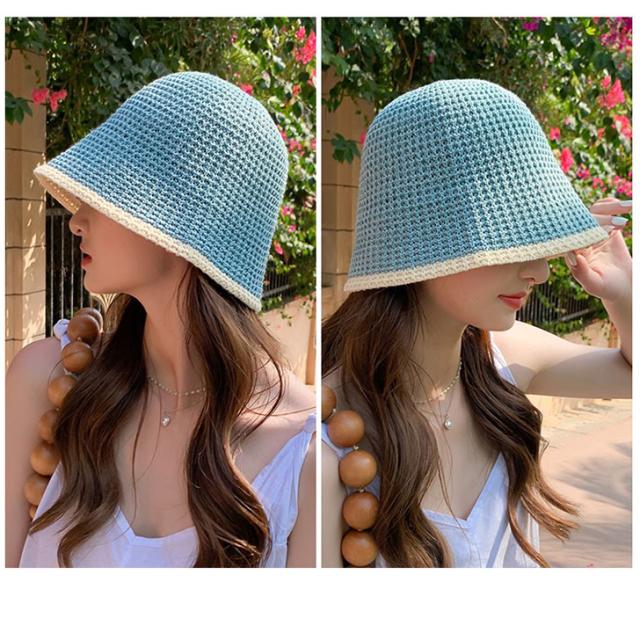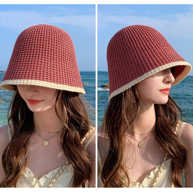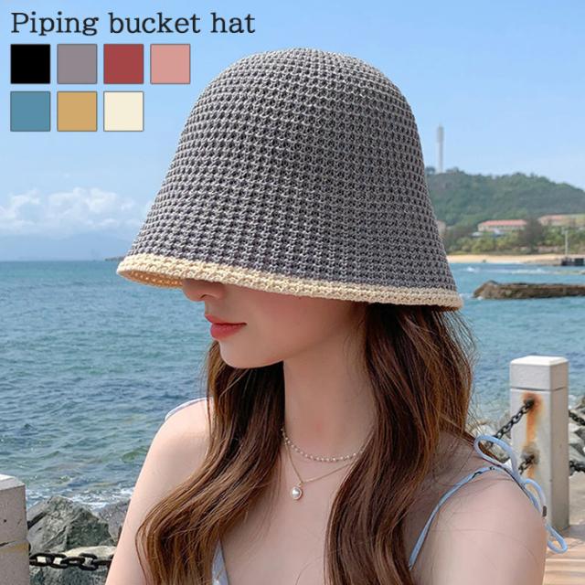 新作 クロシェ編み パイピング バケットハット レディース 帽子 ハット バケハ サーモハット ニット 深め 大きい 日よけ 折りたたみ おしゃれ かわいい 大人 上品 きれいめ 韓国 レトロ ファッション 夏 海