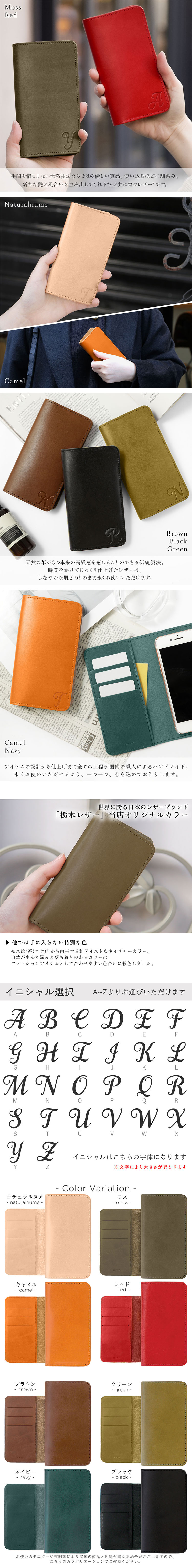 栃木レザー製の手帳型ケース。