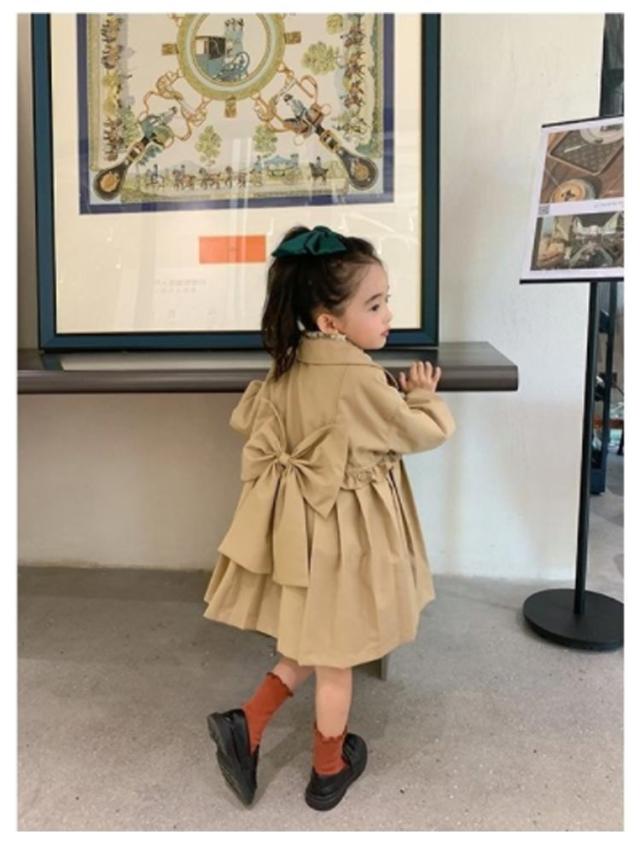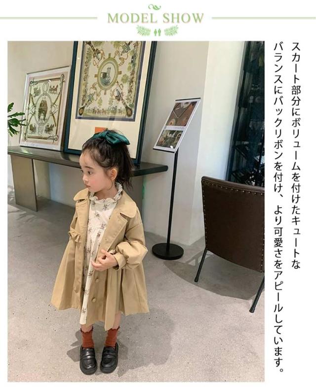 バックリボン トレンチコート ギャザー フレア トレンチコート スプリングコート チェスターコート キッズ 女の子 春 秋 子供服 アウター 長袖 コート ワンピース きれいめ 春アウター 通園 通学 発表会 ベージュ