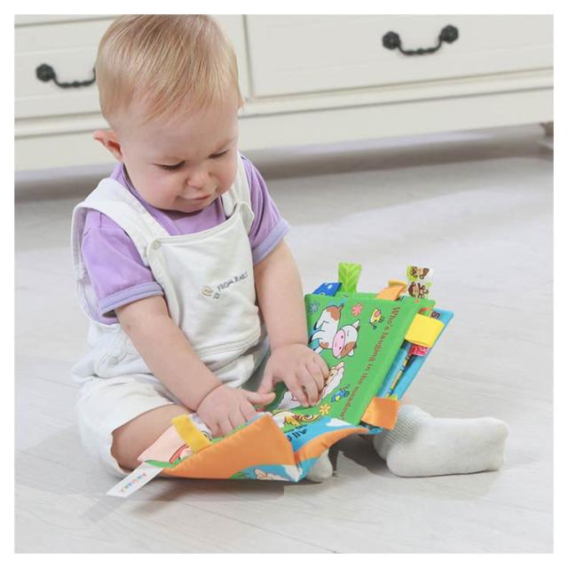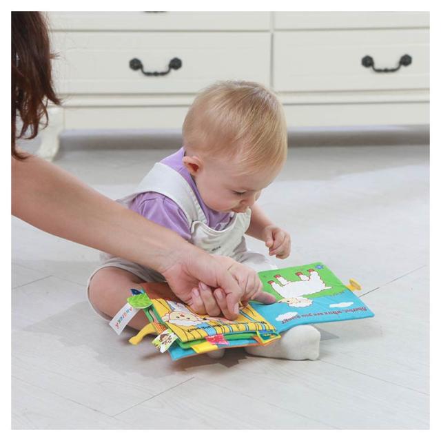 | 遊びながら脳を刺激する布絵本! ページをめくるたびに、パリパリとした音と独特な感触を楽しめます。 はっきりとした色合いのイラストが目を引く、0歳から遊べます。 さまざまな素材が使われているから各所の手触りの違いも感じることのできる、 見て触って聞いて楽しい布製絵本です。 お出かけにも便利なリングクリップ付き。 | |