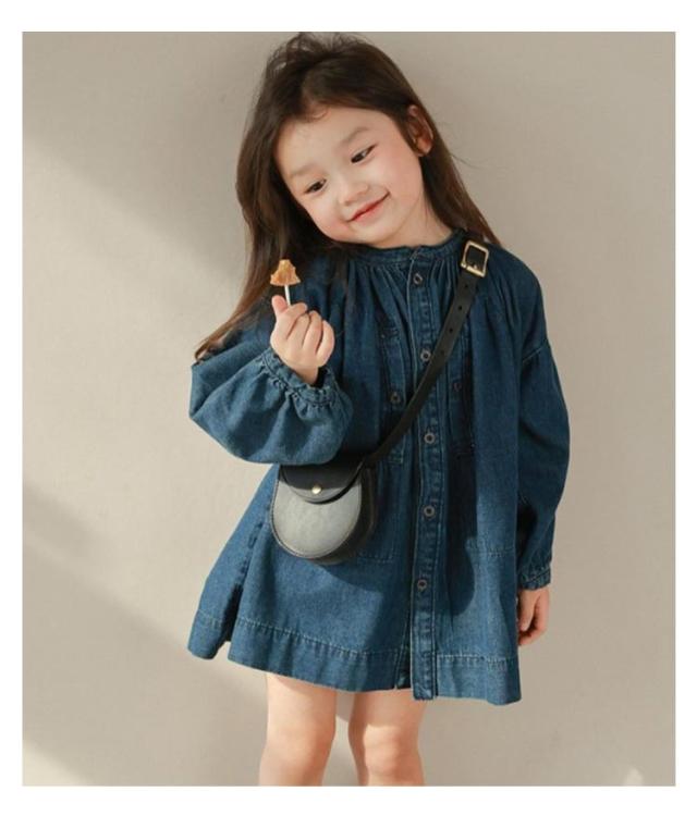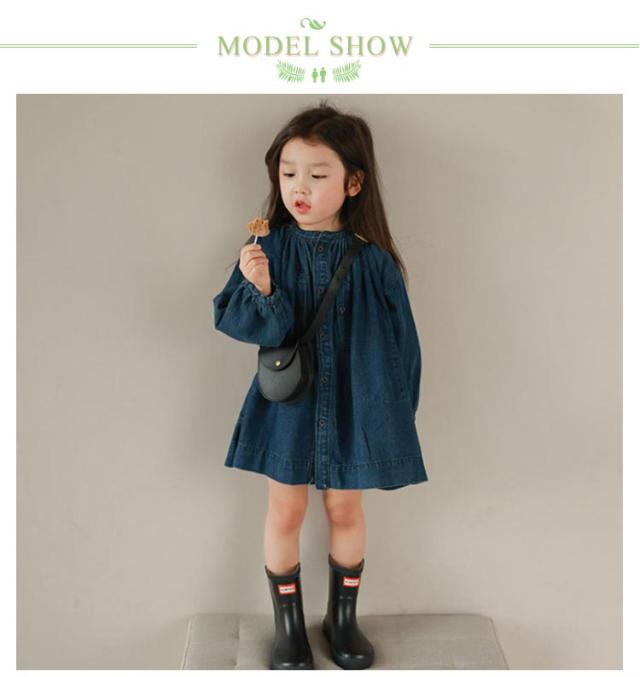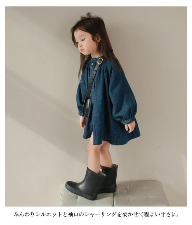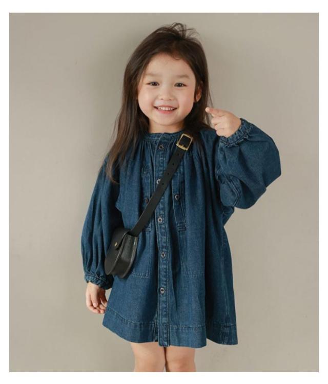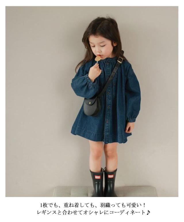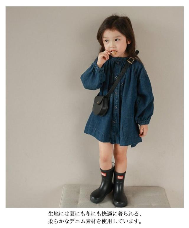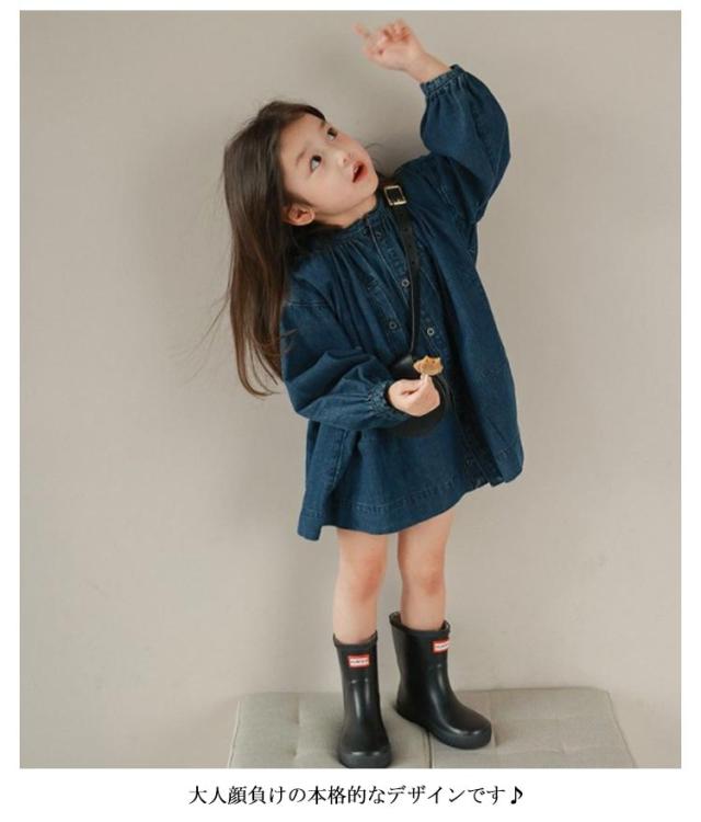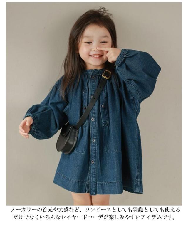 | ボタンを空けて羽織としてもコーデできるキッズ用デニムワンピース! ふんわりシルエットと袖口のシャーリングを効かせて程よい甘さに。大人顔負けの本格的なデザインです♪ ノーカラーの首元や丈感など、ワンピースとしても羽織としても使えるだけでなくいろんなレイヤードコーデが楽しみやすいアイテムです。 生地には夏にも冬にも快適に着られる、柔らかなデニム素材を使用しています。 1枚でも、重ね着しても、羽織っても可愛い!レギンスと合わせてオシャレにコーディネート♪ | |