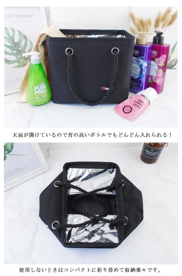 | ジムや温泉、海、プールに必要な洗面用具をまとめて持ち運べるメッシュバッグ。 シャンプーなどのボトルを横置きすることなく縦ですっぽり入れることができます。 天面が開けているので背の高いボトルでもどんどん入れられる! 持ち手が太目のロープを採用しているため、細目のものと比べて手が痛くなりにくく持ちやすいです。 底はメッシュになっており水切りができるようになっています。 使用しないときはコンパクトに折り畳めて収納楽々です。 外側は防水生地を採用しているため、水が内部にしみ込んでいくことがありません。 裏地はアルミホイル複合材を使用しており防汚性と撥水性に優れています。 | |