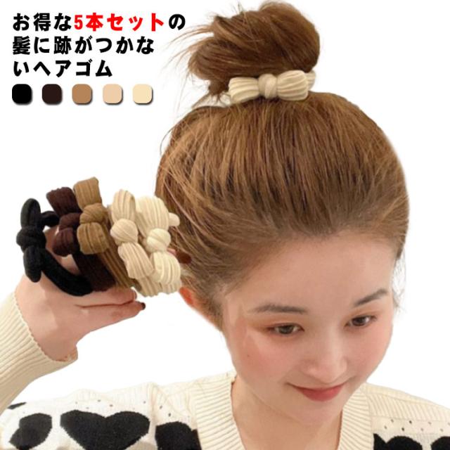 レディース ヘアアクセ 髪留め ヘアゴム 5本セット 髪に跡がつかない ヘアアクセサリー まとめ髪 送料無料 太め リボン シンプル 大人 おしゃれ 可愛い カジュアル オフィス 通勤