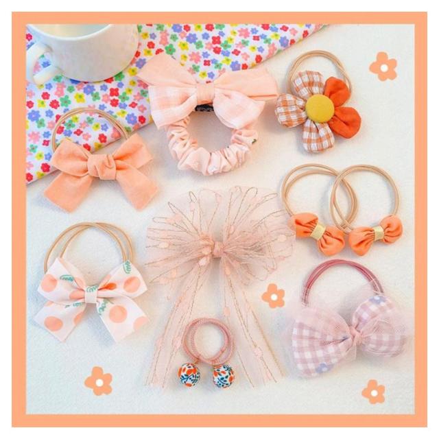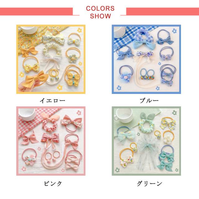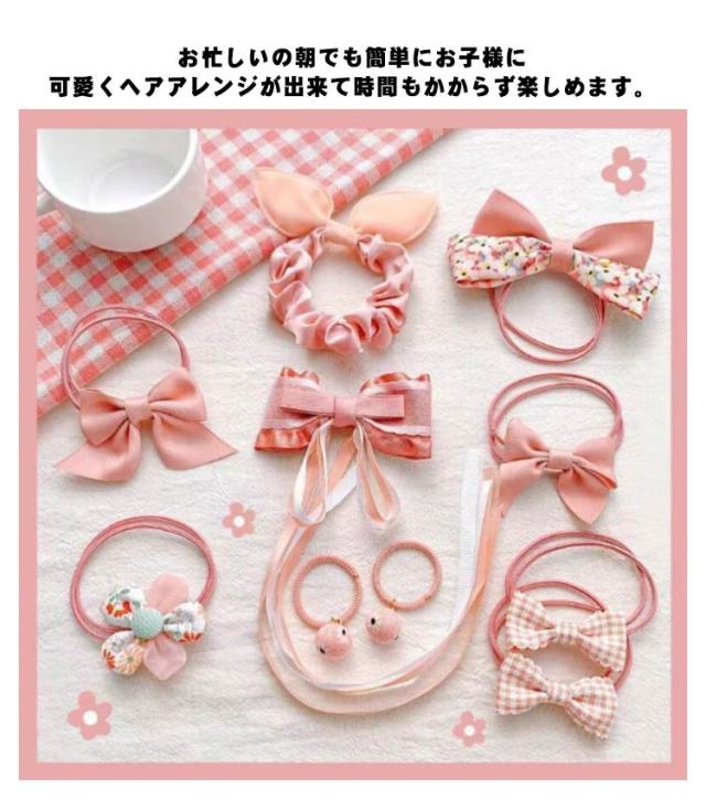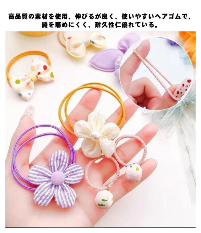 | シンプルなリボンデザインやフラワー柄まで使いやすいデザインの詰め合わせ。 高品質の素材を使用、伸びるが良く、使いやすいヘアゴムで、髪を痛めにくく、耐久性仁優れている。 お忙しいの朝でも簡単にお子様に可愛くヘアアレンジが出来て時間もかからず楽しめます。 お誕生祝、記念撮影、外出、ショッピング等お出かけやパーティーの装い、もちろん普段使いにもオススメです! | |