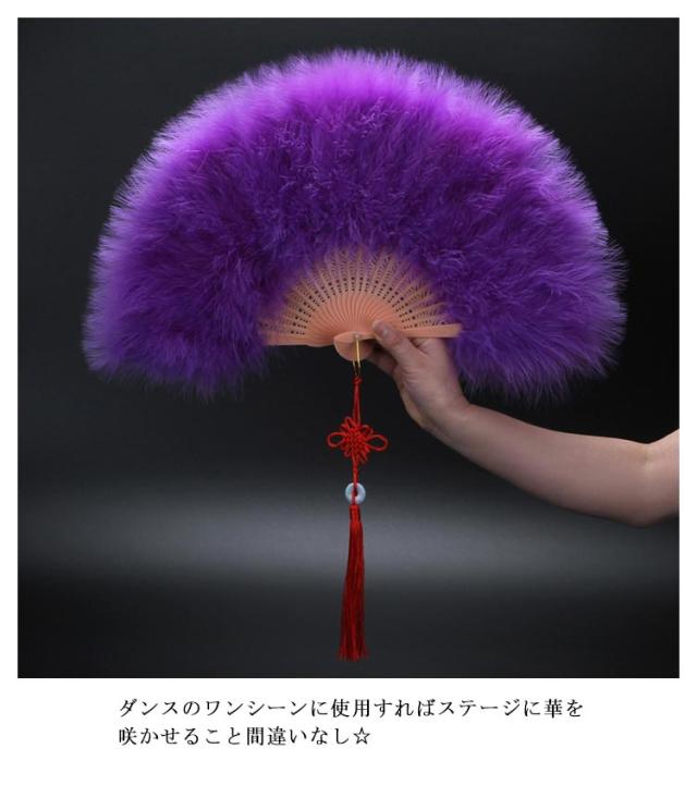 | ダンスの舞台演出にピッタリなとてもふわふわした羽のついた扇子です。 ダンスのワンシーンに使用すればステージに華を咲かせること間違いなし☆ | |