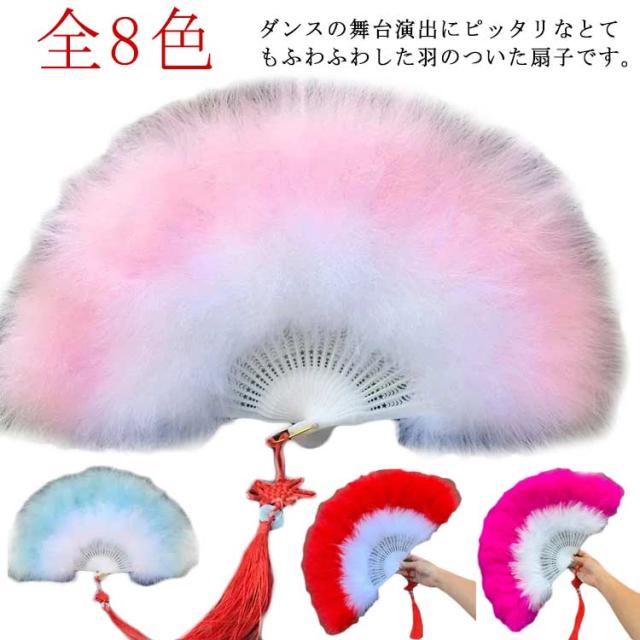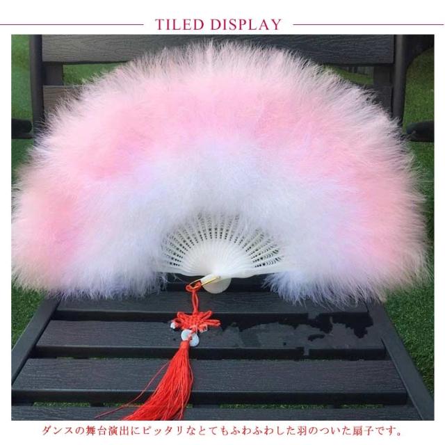 | ダンスの舞台演出にピッタリなとてもふわふわした羽のついた扇子です。 ダンスのワンシーンに使用すればステージに華を咲かせること間違いなし☆ | |
