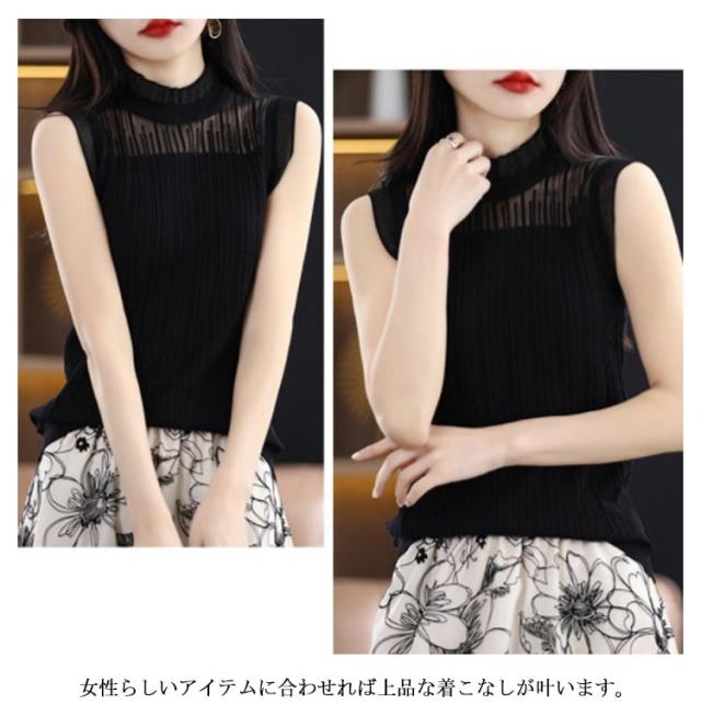 送料無料 シースルー ニットトップス レディース レーストップス シアー タートルネック 春 夏 カットソー シースルー チュール インナー 切り替え かわいい お洒落 レイヤード 大人 フェミニン S M L XL