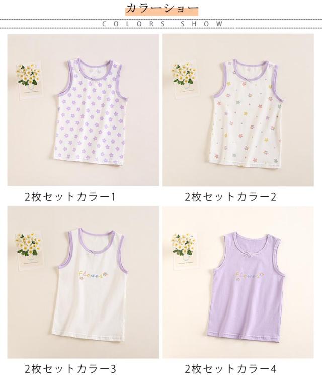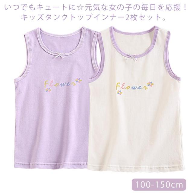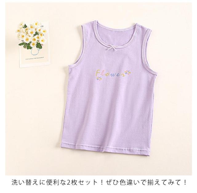 送料無料 2枚組セット インナー 肌着 タンクトップ キッズ ジュニア 女の子 子供用 トップス ノースリーブ 下着 インナーウエア リボン付き かわいい ガール 女児 綿 コットン キャミソール