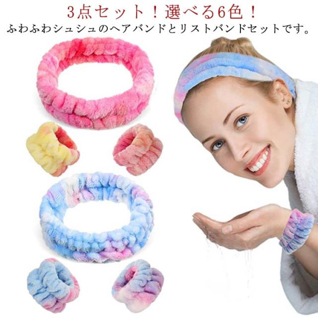 3点セット マイクロファイバー ヘアバンド リストバンド セット まとめる 服濡れ防止 水伝い防止 髪 ふんわり お風呂上がり 大人 シュシュ 吸水 袖ぬれ 吸水 フリーサイズ もこもこ 洗顔 吸水タオル 袖濡れ防止 手洗い 洗い替え 洗顔
