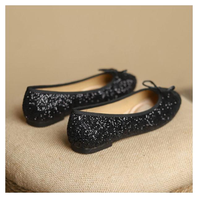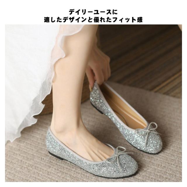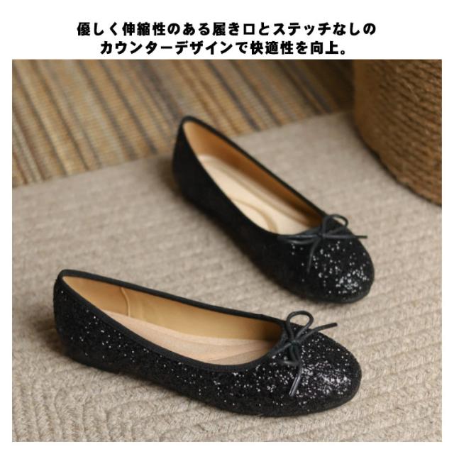 パンプス ローヒール キラキラ 痛くない 柔らかい スクエアトゥ フラット バレエシューズ レディース グリッター フラットシューズ リボン ぺたんこ パンプス 歩きやすい パーティー 黒 ブラック シルバー