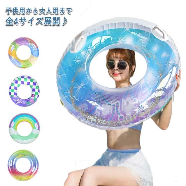 全4サイズ 浮き輪 子供用 大人用 浮輪 ハンドル付 水遊び フロート キラキラ レインボー 男の子 女の子 送料無料 海 プール ビーチ 海水浴 浮輪 フロート かわいい おしゃれ 綺麗 取っ手付き うきわ