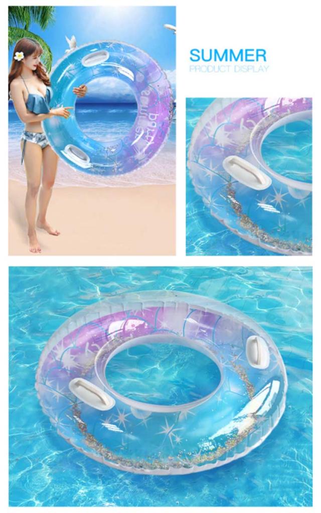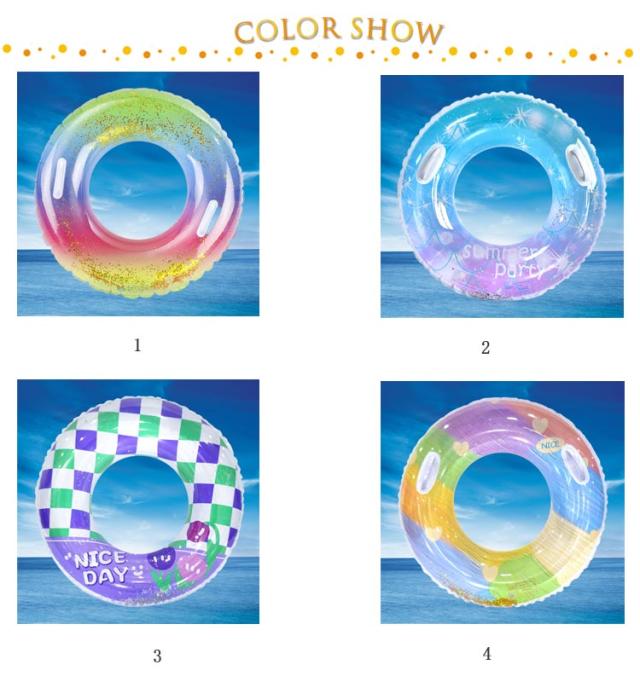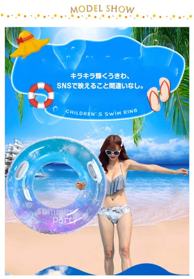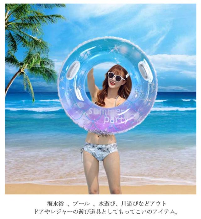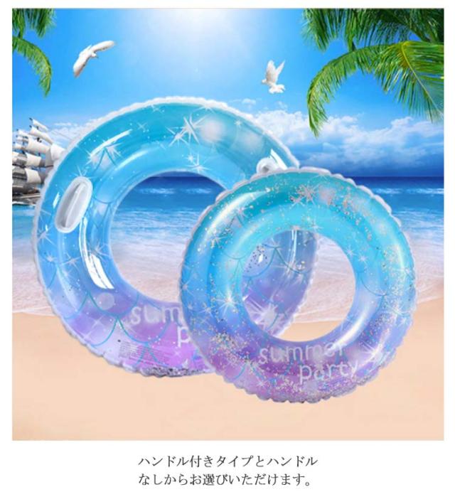 | 子供用から大人用まで全4サイズ展開♪ キラキラ輝くうきわ、SNSで映えること間違いなし。 ハンドル付きタイプとハンドルなしからお選びいただけます。 水の上でリラックスしながら夏が楽しめます! 海水浴 、プール 、水遊び、川遊びなどアウトドアやレジャーの遊び道具としてもってこいのアイテム。 | |