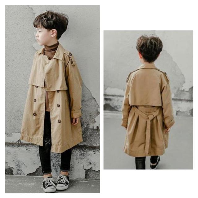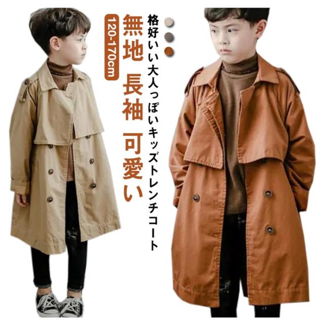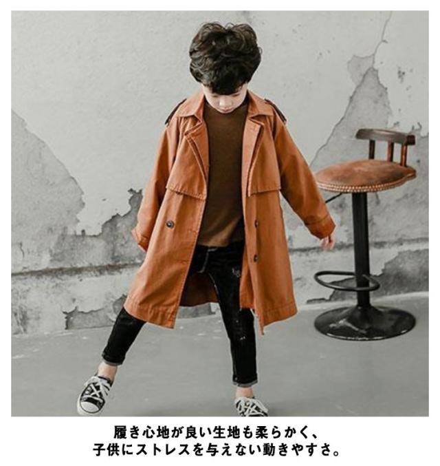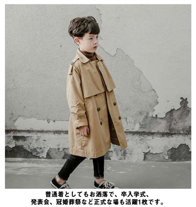 トレンチコート 子供服 男の子 子供コート キッズ アウター ロングコート ロング丈 膝下 ひざ下 上着 羽織り ライトアウター 無地 長袖 大きいサイズ ゆったり かわいい 110 120 130 140 150 160 可愛い 舞台衣装 司会 入園式 送料無料