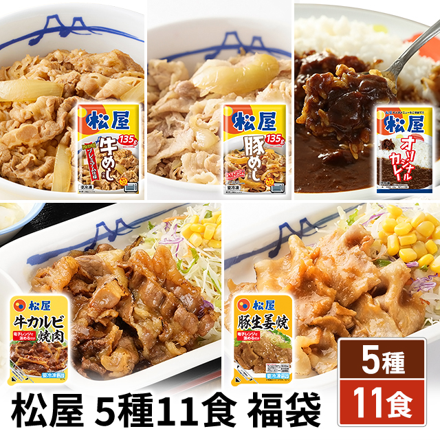 送料込み 松屋 5種11食 福袋 牛めし 豚めし カレー カルビ焼肉 豚生姜焼肉 アソート 詰め合わせ 食べ比べ セット 冷凍 惣菜