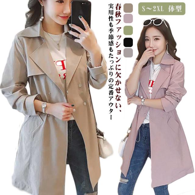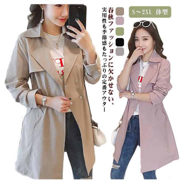 トレンチコート レディース 春コート 秋コート オーバーサイズ スプリングコート ロングコート ママスーツ 上着 羽織り 体型カバー コート 大人可愛い 無地 アウター 春秋 通勤 通学 春服 20代 30代 40代 50代 ビジネス スーツ 卒園式 卒業式 送料無料 ギフト