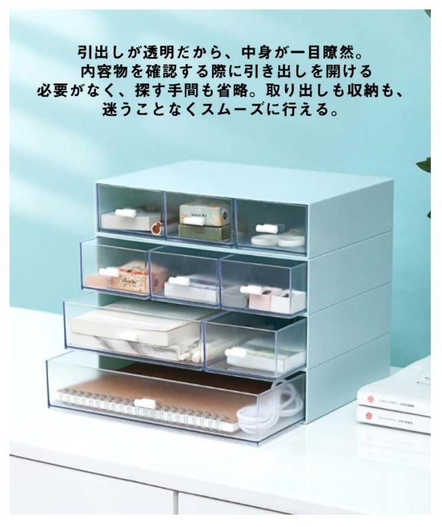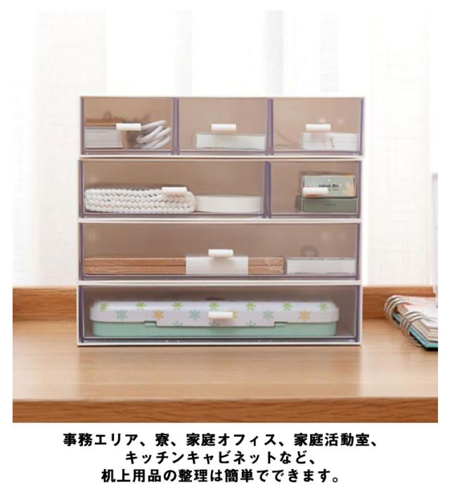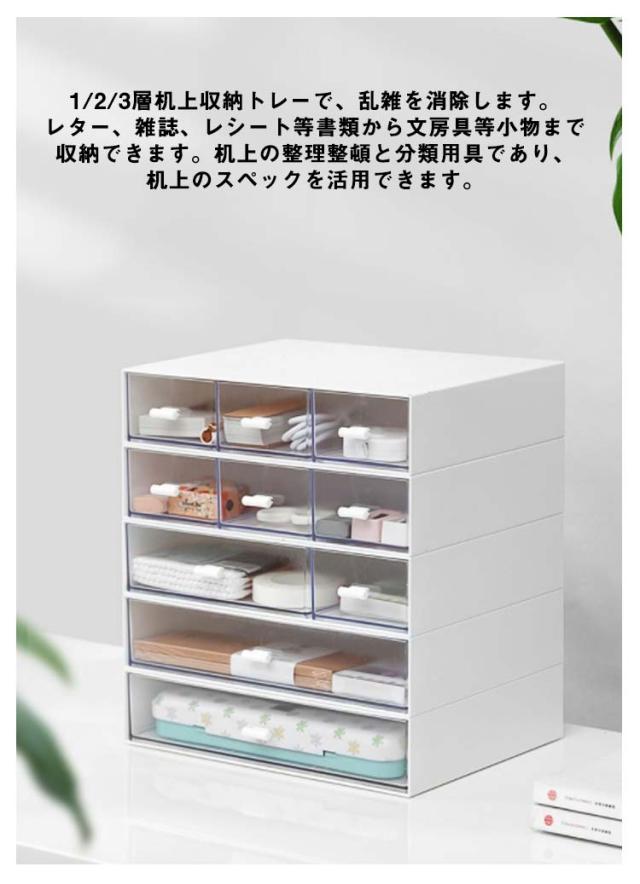 | 【引き出しで一目瞭然】引出しが透明だから、中身が一目瞭然。 内容物を確認する際に引き出しを開ける必要がなく、探す手間も省略。取り出しも収納も、迷うことなくスムーズに行える。 【机上整理整頓】1/2/3層机上収納トレーで、乱雑を消除します。レター、雑誌、レシート等書類から文房具等小物まで収納できます。机上の整理整頓と分類用具であり、机上のスペックを活用できます。 【自由な組み合わせ】文房具、事務用品、化粧品、小物などをすっきり収納ケース。1/2/3段のデザイナで自由な組み合わせが可能です。積み重ねられるので省スペースで収納力が上がります。 【利用シーン】巧なデザインで、色んな場所で利用できます。事務エリア、寮、家庭オフィス、家庭活動室、キッチンキャビネットなど、机上用品の整理は簡単でできます。 | |