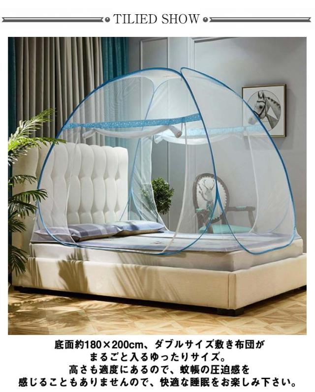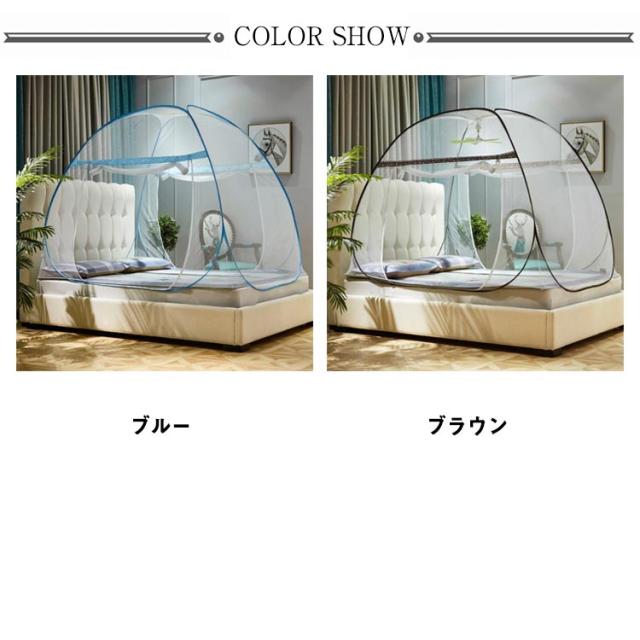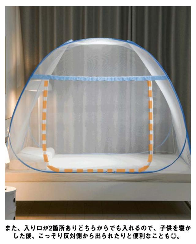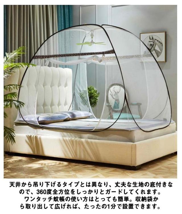 蚊帳 ワンタッチ式 モスキートネット テント型 ドーム型 底付きタイプ ダブルドア 2ドアタイプ 360度全面ガード 底面付き 虫除け対策 両面ファスナー 蚊対策 虫刺され防止 虫よけ 全2色