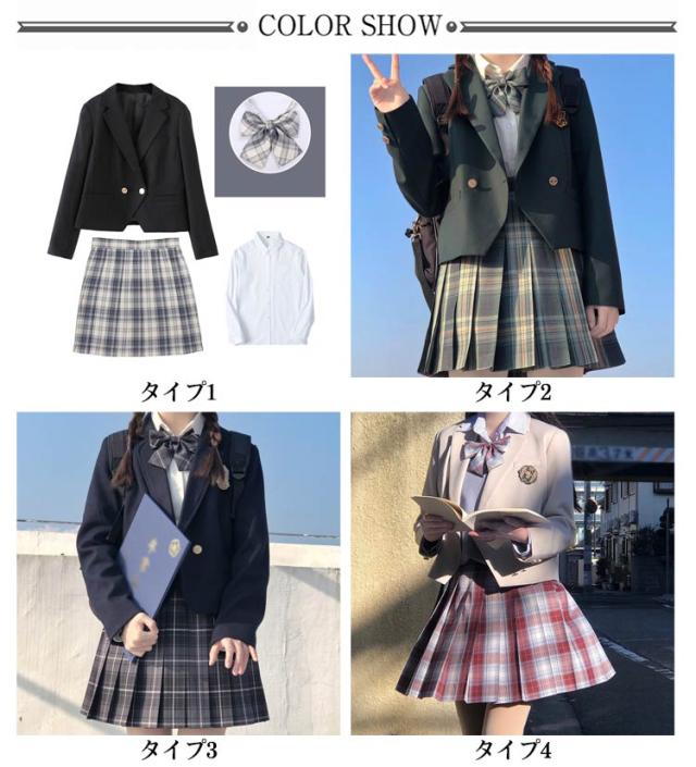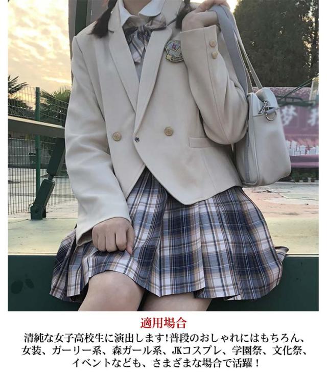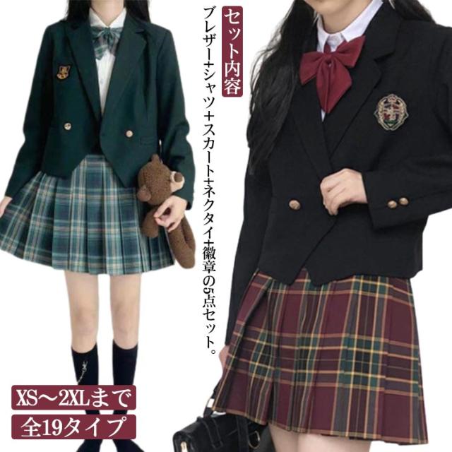 女子高校生 制服 5点セット ブレザー 女子高生 制服 コスプレ JK制服 長袖 シャツ スカート チェック リボン 学生服 ジャケット 学生制服 スクール 制服 セットアップ レディース 女子 高校生 学園祭 文化祭 衣装 仮装 コスチューム 【送料無料】