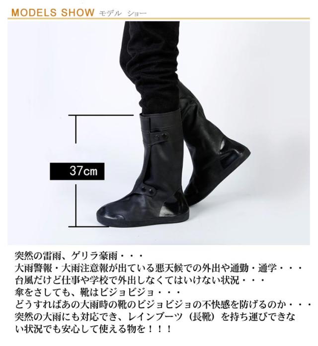 レインブーツカバー 長靴 送料無料 シューズの上に レインシューズカバー シューズカバー ロング 防水 雨 メンズ レディース 男女兼用 靴カバー 雨具 ロング丈 37cm 靴底滑り止 梅雨対策 アウトドア 通勤 通学