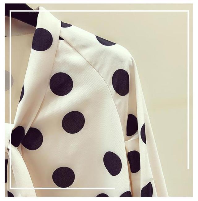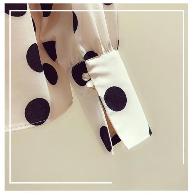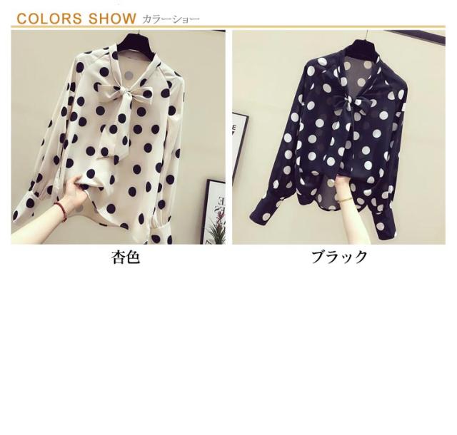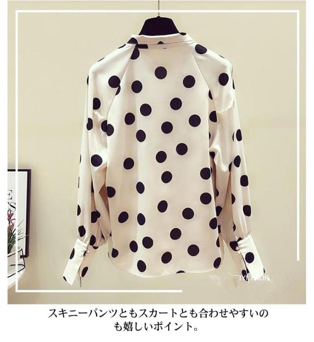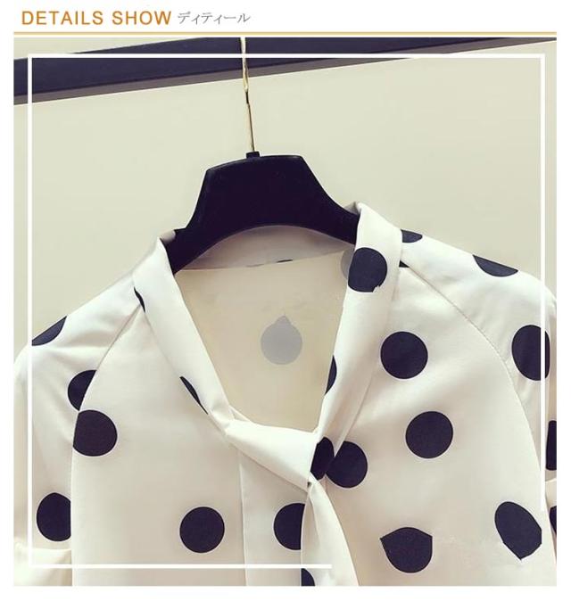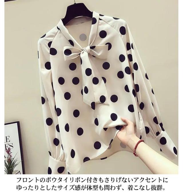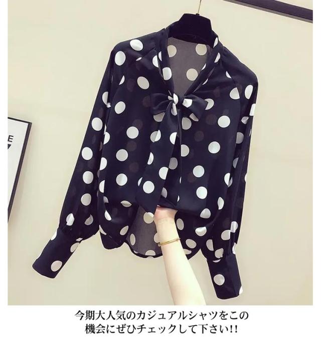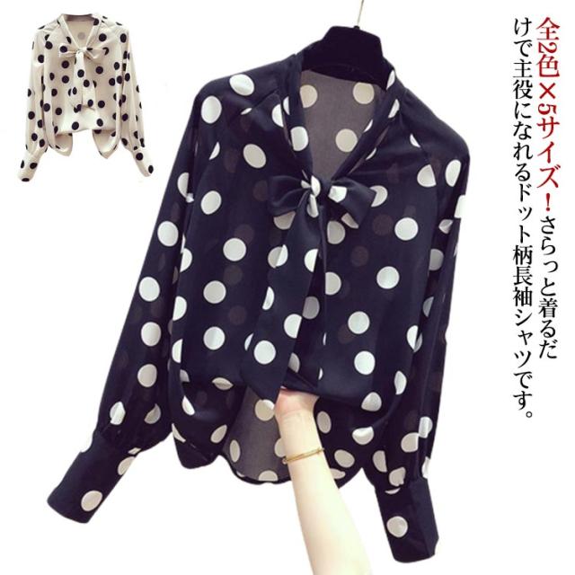 水玉柄 シャツブラウス ボウタイリボン付き とろみシャツ 送料無料 長袖シャツ レディース シャツ ブラウス ドット柄 トップス シフォン リボン 大人 かわいい 夏服 夏物 オフィス キレイめ