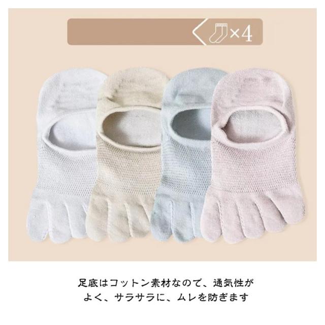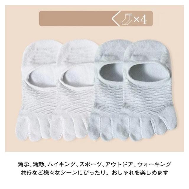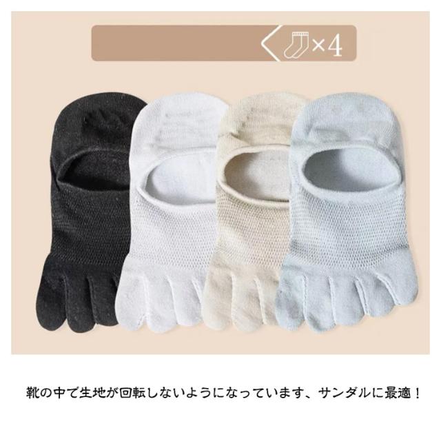 4足セット 快適 五本指ソックス 靴下 シンプル フットカバー 浅履き 足指 レディース メンズ くるぶしソックス 脱げない 滑り止め 水虫予防 吸汗 通気 無地 綿 春 夏 秋 冬 抗菌 重ね履き オールシーズン 浅口 パンプソックス ラクちん
