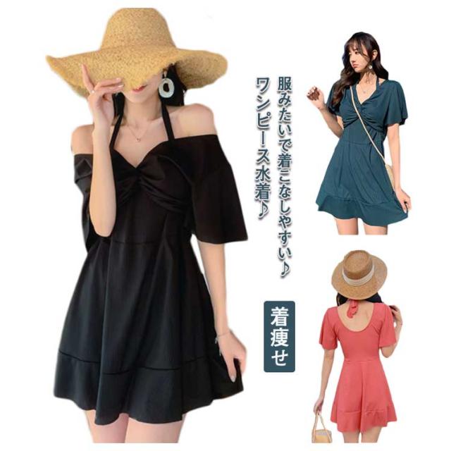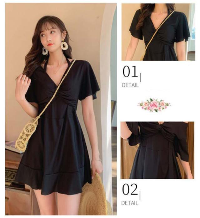 大きいサイズ 水着 体型カバー レディース ぽっちゃり ワンピース水着 温泉水着 Vネック 膝上丈 水着 背中だし 着痩せ ワイヤー入り パッド付きビーチ 海デート セクシー 大人可愛い ブラック ママ水着 20代 30代 40代 50代 女子 露出控えめ 脚 二の腕