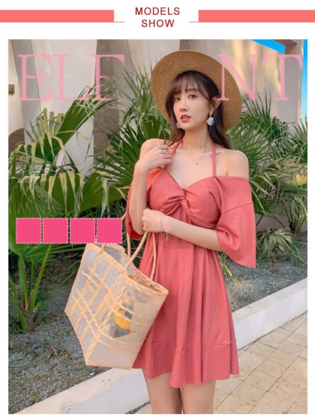 | 服みたいで着こなしやすい♪ワンピース水着♪ 気になるお腹や太もも〜ヒップまでを可愛くしっかり体型カバー出来るのも嬉しいポイントです。 ワイヤー入りなので、バストラインを綺麗に見せてくれること間違いなし!可愛くてセクシーなデザインで、ビーチ、リゾート、夏フェス、海、プールと夏に大活躍の一着! | |