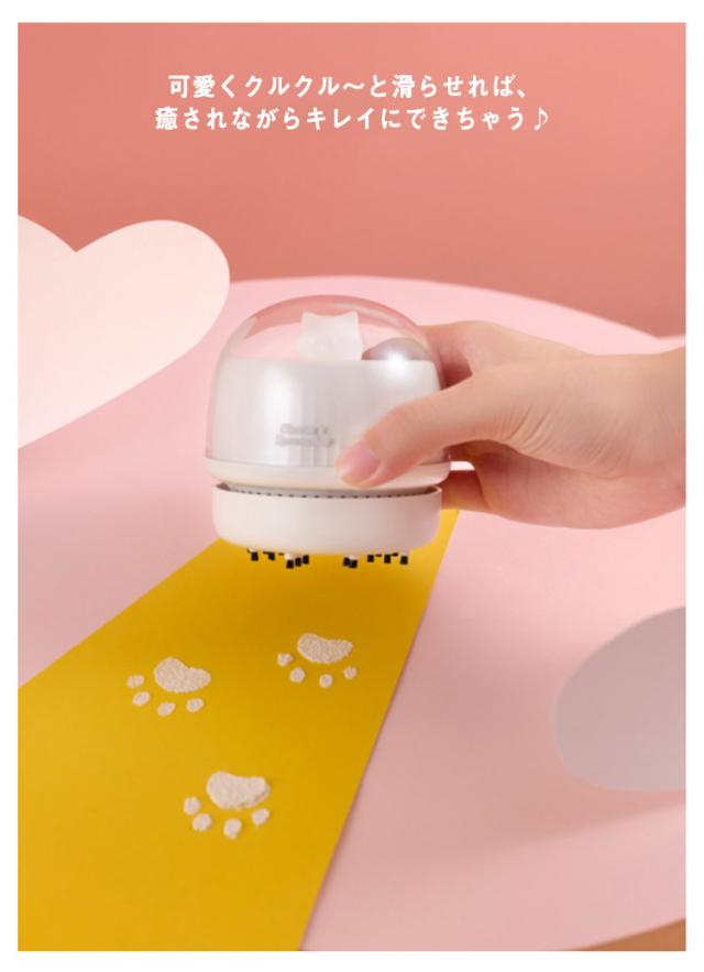 卓上クリーナー USB充電式 強力吸引 ネコ ねこ ミニ掃除機 ミニサイズ 消しゴム 紙くず キーボード 可愛い 猫 3段階調節可能 ドーム型 家事楽アイテム デスク 卓上 全3色