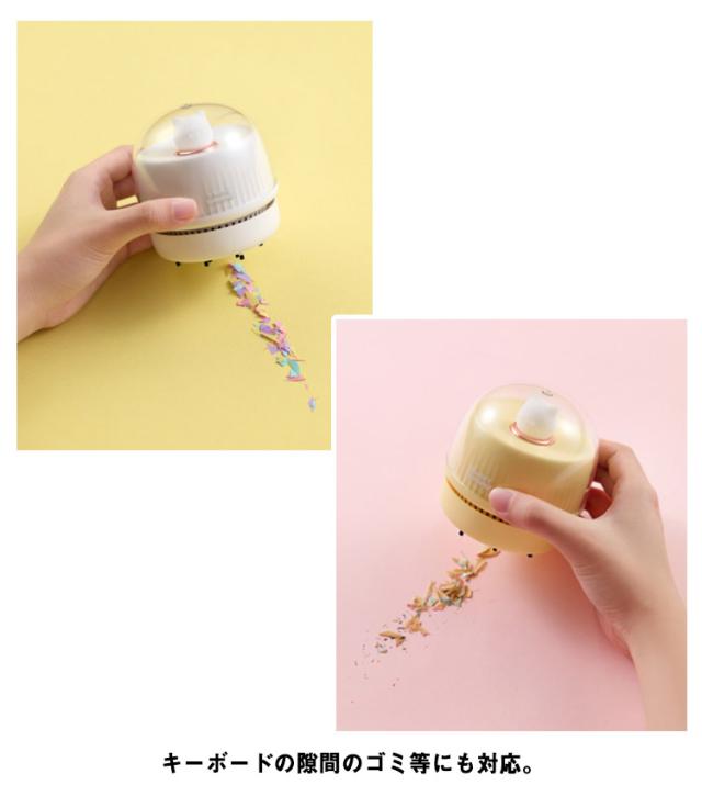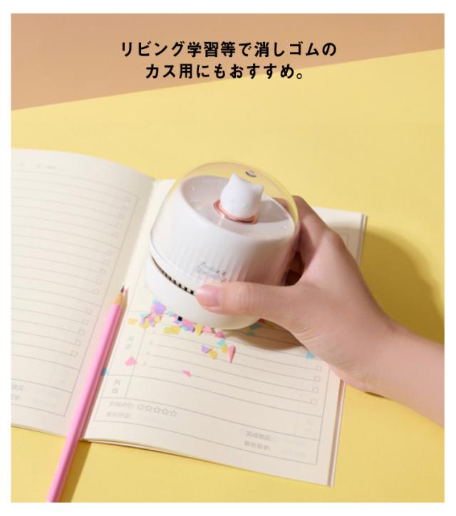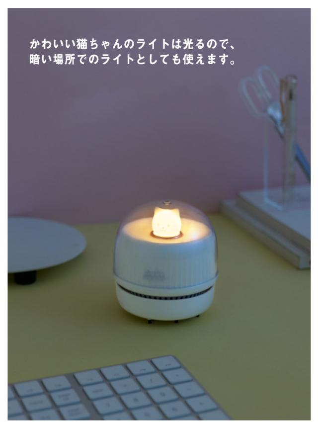 | ・かわいい猫ちゃんの卓上クリーナーです! ・机の上の小さいゴミやほこりを手軽にクリーニングできる卓上クリーナーの登場です。 ・可愛くクルクル〜と滑らせれば、癒されながらキレイにできちゃう♪ ・操作は電源のON・OFFのみで簡単なので、お子さんでも使いやすいです。 ・吸引力は、3段階の調節に対応。ゴミの量や大きさに応じて変更できます。 ・リビング学習等で消しゴムのカス用にもおすすめ。 ・キーボードの隙間のゴミ等にも対応。 ・電源は、充電式なので場所を選ばず使えて、煩わしい電池交換も不要です。 ・付属のUSBケーブルを使用してパソコンなどから充電することができます。 ・かわいい猫ちゃんのライトは光るので、暗い場所でのライトとしても使えます。 ・ダストボックスを回して取り外して簡単にゴミを捨てることができます。 | |