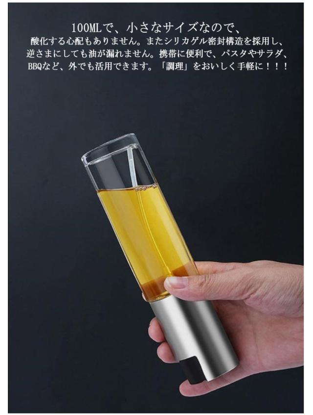 | 霧吹き版のオイルスプレーは、微細フォグエフェクトに達することができます。ノズルは最適化されており、霧状効菓を大幅に改善しました。前方のスイッチを押すと油を大幅にフライパンにひろげることができます。 オイルスプレーは広範囲に吹き出すので、BBQ、フライパン/電気フライヤーなどにむらなく吹き付けられますし、油の使用量を減らすことができます!酢、醤油、レモン汁などにも使えるので、使用範囲が広がります。 食品級素材を採用していますので、安心して使えます。ボトルとストローは食品級PC素材+食品シリカゲルを採用しており、耐腐食性、耐油性があり、液体調味料などキッチン調味料を入れることができます。 100MLで、小さなサイズなので、酸化する心配もありません。またシリカゲル密封構造を採用し、逆さまにしても油が漏れません。携帯に便利で、パスタやサラダ、BBQなど、外でも活用できます。「調理」をおいしく手軽に!!! 1油の出しすぎが防止!2少量の使用で経済的!3ダイエットに効果的!オイルスプレーを使うと油を大量に出しすぎる失敗が避けられます。余計な油を使わずに美味しくお料理が頂けます。 | |