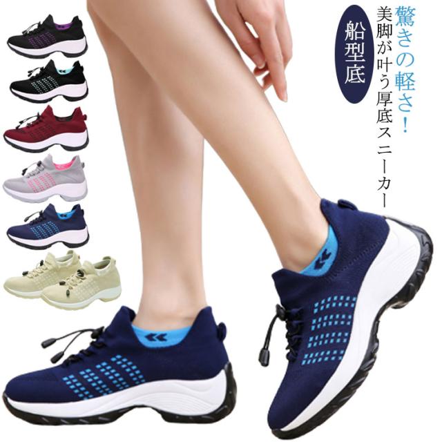 スニーカー レディース 厚底 スニーカー ニットスニーカー スリッポン ウォーキングシューズ 運動靴 スポーツシューズ 疲れにくい おしゃれ 軽量 幅広 ランニング 外反母趾 船型底 婦人靴 歩きやすい ダイエットシューズ アウトドア 通勤 通学 靴 春 夏 秋 母の日 ギフト