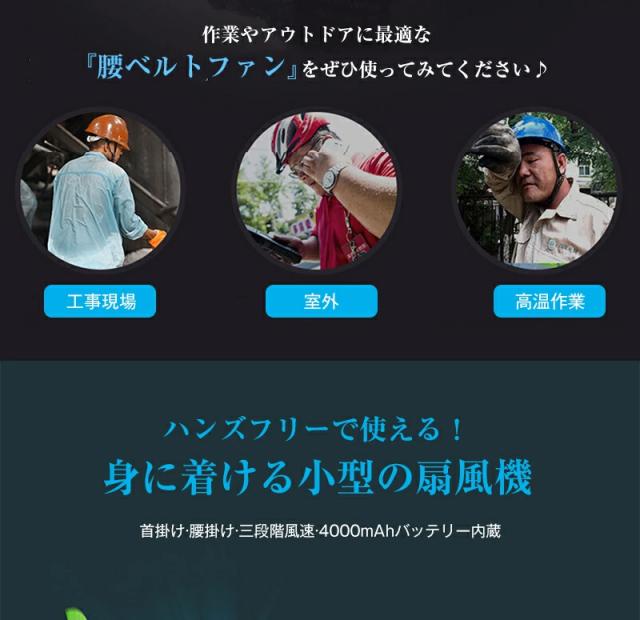 腰掛け扇風機 ジェットファン 送風機 腰ベルトファン 大容量 首かけ 小型 ファン ミニ 熱中症対策 アウトドア 農作業 夏 2個セット